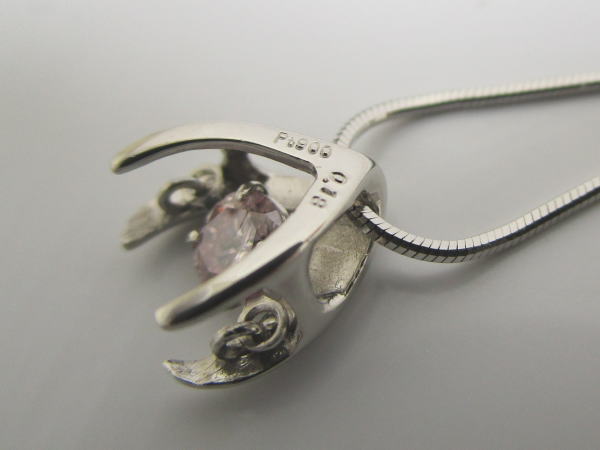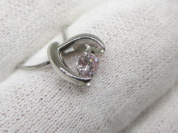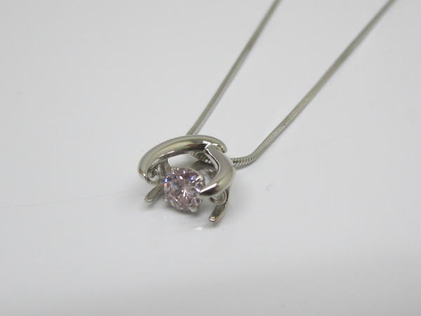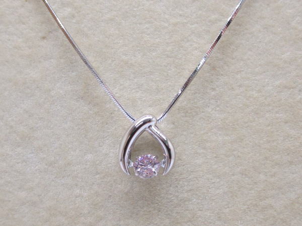 備考 トップの中心で淡いカラーのピンクダイヤが揺れるおしゃれなデザインのネックレスです。