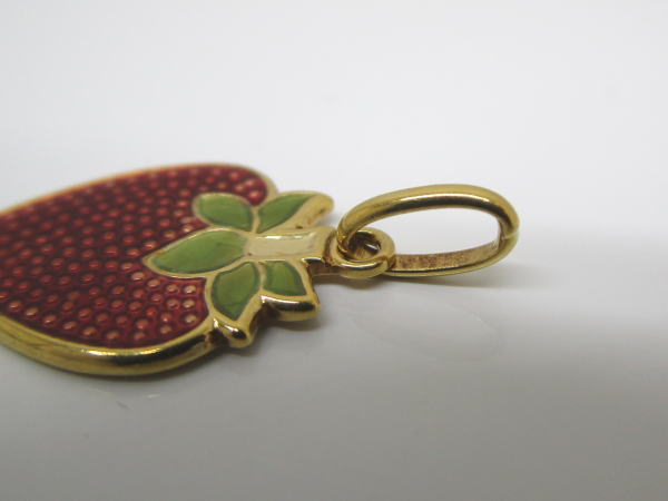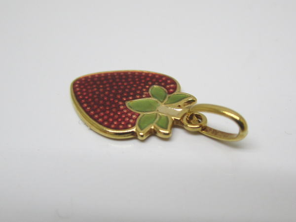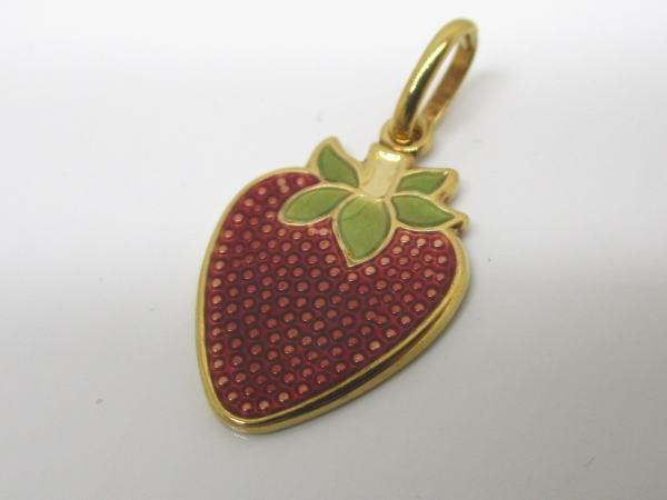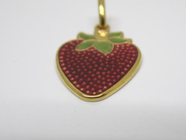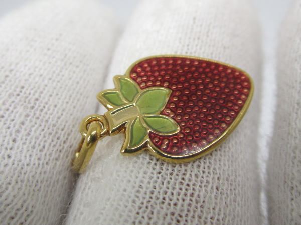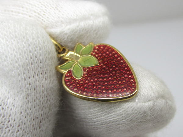 備考 イチゴがペンダントトップになったキュートなアクセサリーです。へたの部分にはペリドットが使用されアクセントになっています。