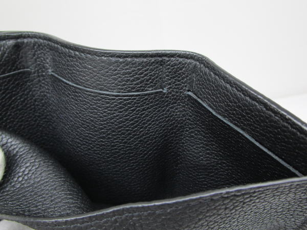 備考 ソフトなカーフレザーで仕立て、フラップにはスナップ開閉式のLV イニシャルをあしらった3つ折り財布です。小銭入れ1、札入れ1、カード入れ3です。